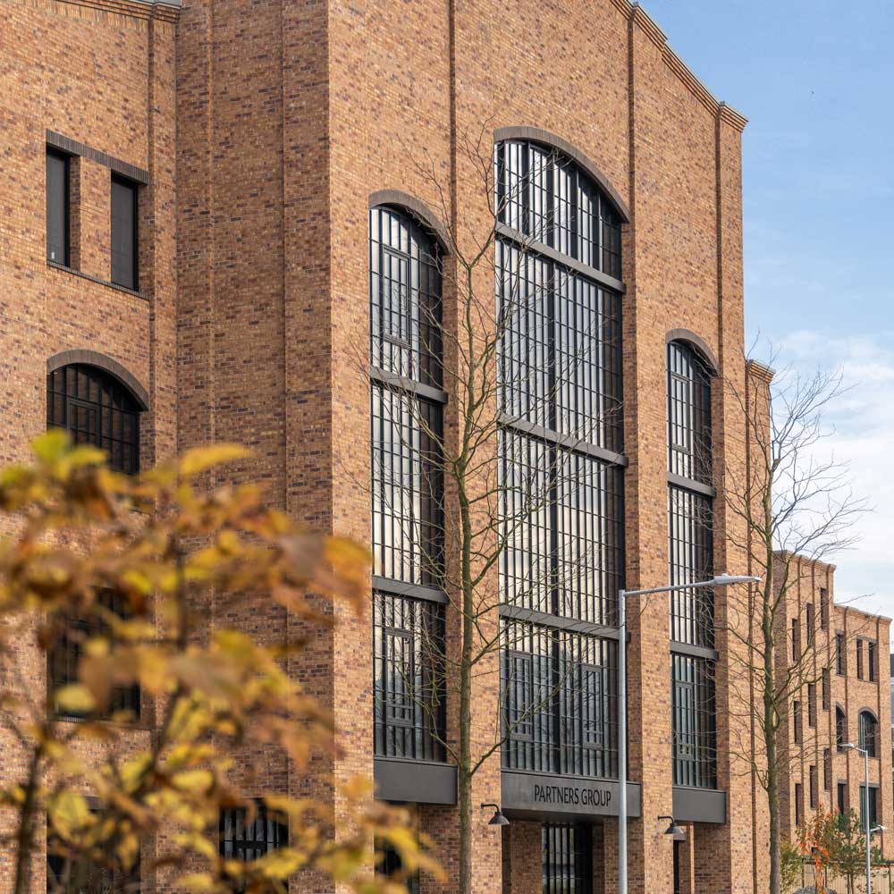 Die vor 30 Jahren in Zug gegrün­dete Part­ners Group ist ein weltweit tätiger Ver­mö­gensver­wal­ter. Das Unternehmen legt grossen Wert auf die architek­tonis­che Gestal­tung sein­er Baut­en. Zwis­chen 2021 und 2024 ent­stand in Baar der neue Welt-Haupt­sitz mit drei Gebäu­den. Das «Green Build­ing» mit sein­er geschwun­genen Form und den begrün­ten Ter­rassen ste­ht für eine dynamis­che, umweltverträgliche Zukun­ft. Es wird ergänzt durch zwei Klink­er­baut­en, die «Foundry» und die «Fac­to­ry». Deren architek­tonis­ches Konzept nimmt Bezug auf den 2018 erbaut­en Nor­dameri­ka-Haupt­sitz der Part­ners Group in Den­ver, der mehrere Gebäude umfasst. Diese ori­en­tieren sich an Indus­triehallen aus dem frühen 20. Jahrhun­dert, zu deren Charak­ter­is­ti­ka beispiel­sweise Fas­saden aus Sichtk­link­er gehören.